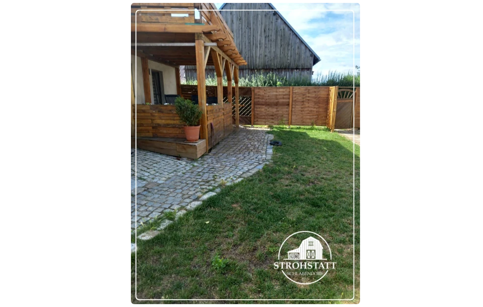 Außerhalb der Wohnung lädt eine ca. 15qm große Terrasse zum Verweilen ein. Hier stehen Freizeitstühle und Sonnenliegen zur Verfügung. Auch befindet sich ein Fahrradabstellplatz für die eigenen Fahrräder direkt neben der Terrasse. Zusätzlich kann nach Absprache auch die ca. 1600 qm große Wiese hinter den Nebengebäuden auf dem Grundstück genutzt werden.